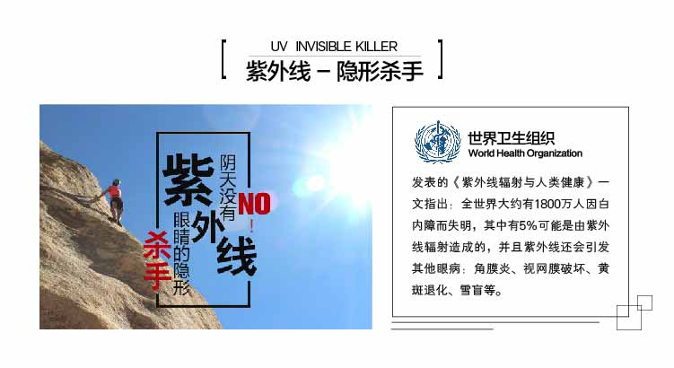 變色片即采用漸進多焦技術(shù)既能看遠看近,又能變色成太陽鏡擋紫外線的鏡片。紫外線強時變色則深,紫外線弱時變色則淺,沒有紫外線時則是透明白片,老花鏡配戴上之后,就不用隨身攜帶兩副甚至多副眼鏡。